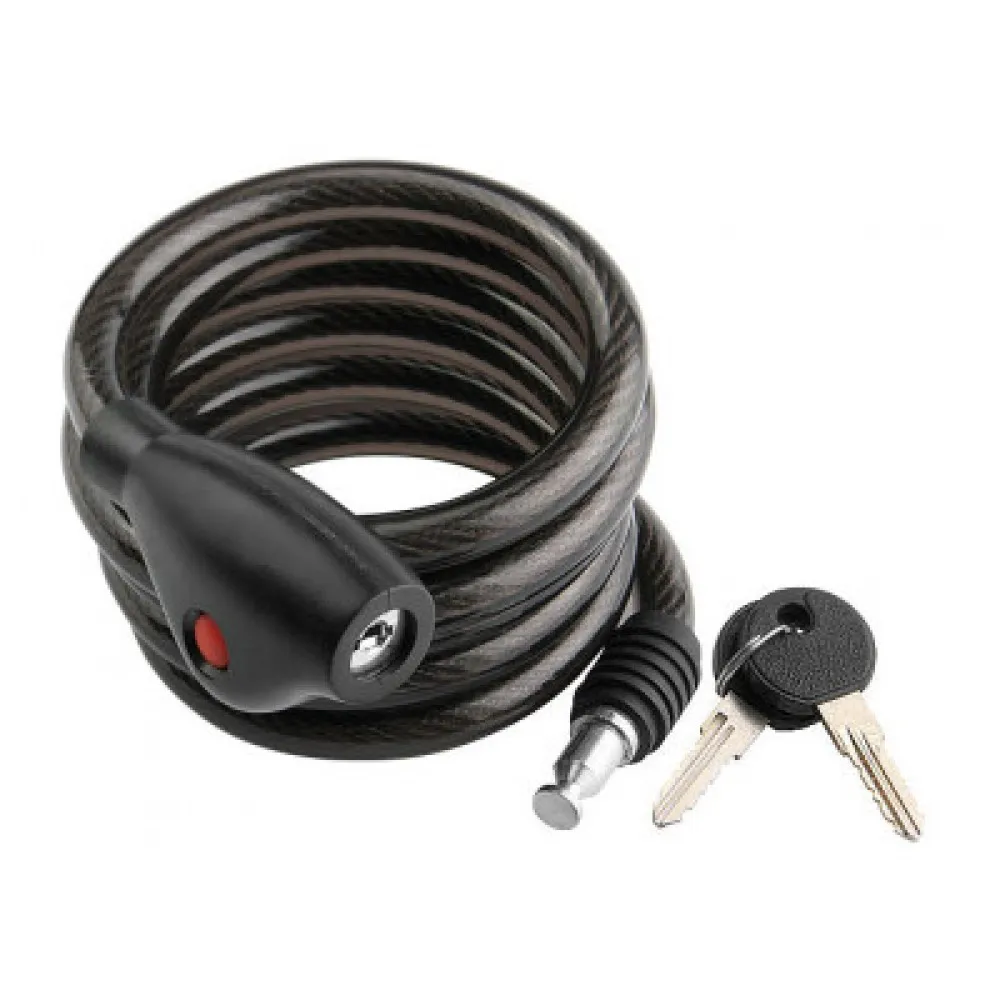 Стальной тросик укрыт под пластиковой оболочкой, а его концы представляют собой запирающее устройство. В зависимости от сложности замка, оно может быть кодовым или обычным. Длина троса также может быть любой: большое значение позволяет приковать электросамокат к основательной опоре, или соединить несколько транспортных средств между собой. Надежность замка зависит не столько от наличия кодового замка или вида опоры, сколько от толщины троса. Компактное, легкое и удобное устройство обеспечивает самокату безопасное хранение во время похода в магазин.