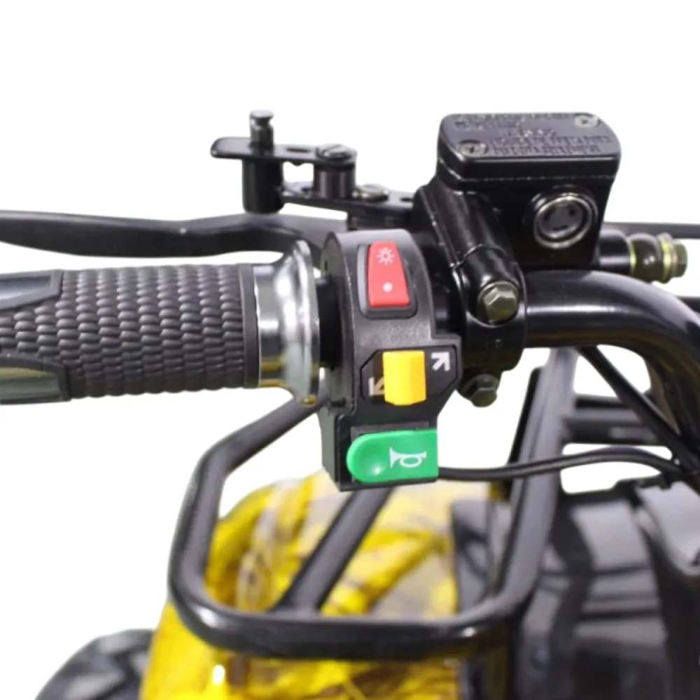 Данный квадрик обладает пониженной передачей, барабанными передними тормозами, а сзади - ножным дисковым гидравлическим тормозом. У него тихий и мягкий ход из-за отсутствия цепной передачи и наличия дифференциала.