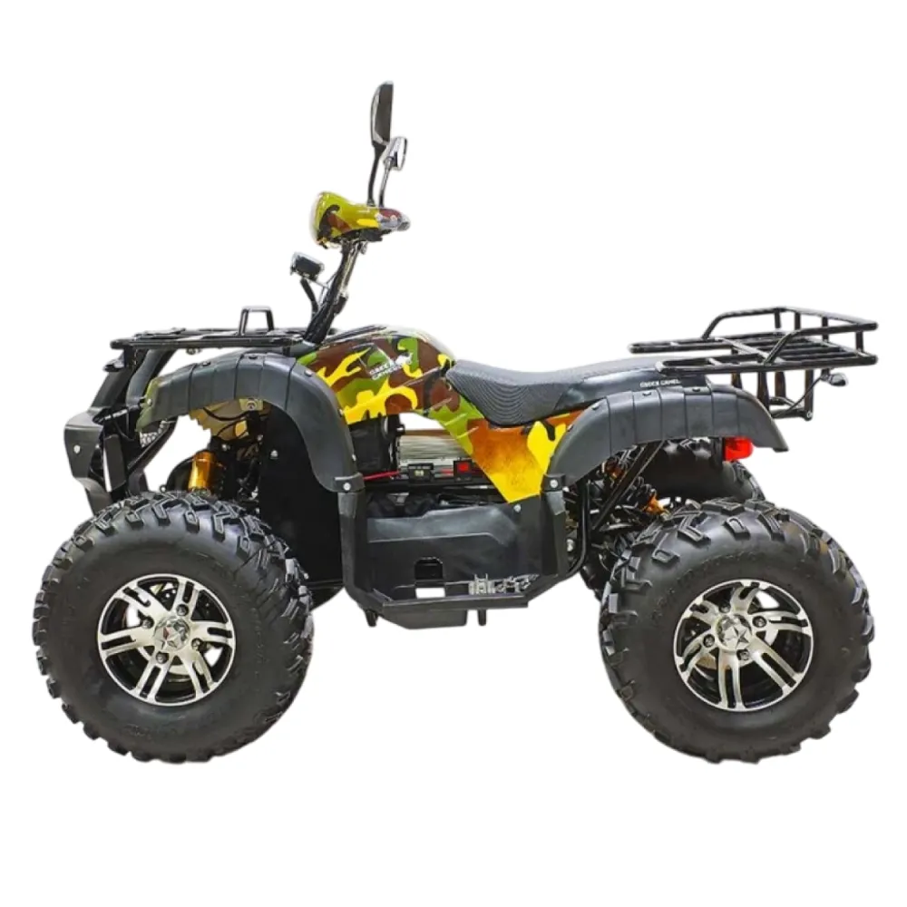 GreenCamel Sahara AWD 4x4 – отличный квадроцикл производимый в России. Он прекрасно подойдёт как подросткам возрастом от четырнадцати лет, так и взрослым. Его максимальная нагрузка: двести килограмм. GreenCamel Sahara AWD 4x4 можно разогнать до скорости 40 км/ч. На все колёса установлены дисковые гидравлические тормоза. Есть трехскоростной переключатель с ключом. Также имеется: фаркоп, зеркала, поворотники, сигнал, LCD дисплей. Имеется возможность отключать передний привод. Установленную штатную батарею 52Ah SLA GEL можно заменить на более ёмкую. Штатная, заряжается полностью за восемь часов и позволяет проехать 35 километров (при использовании обоих приводов) или 75 километров (при использовании одного привода).