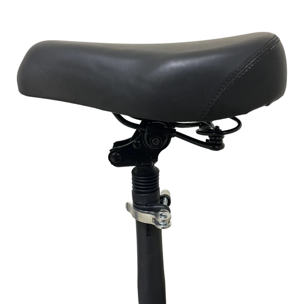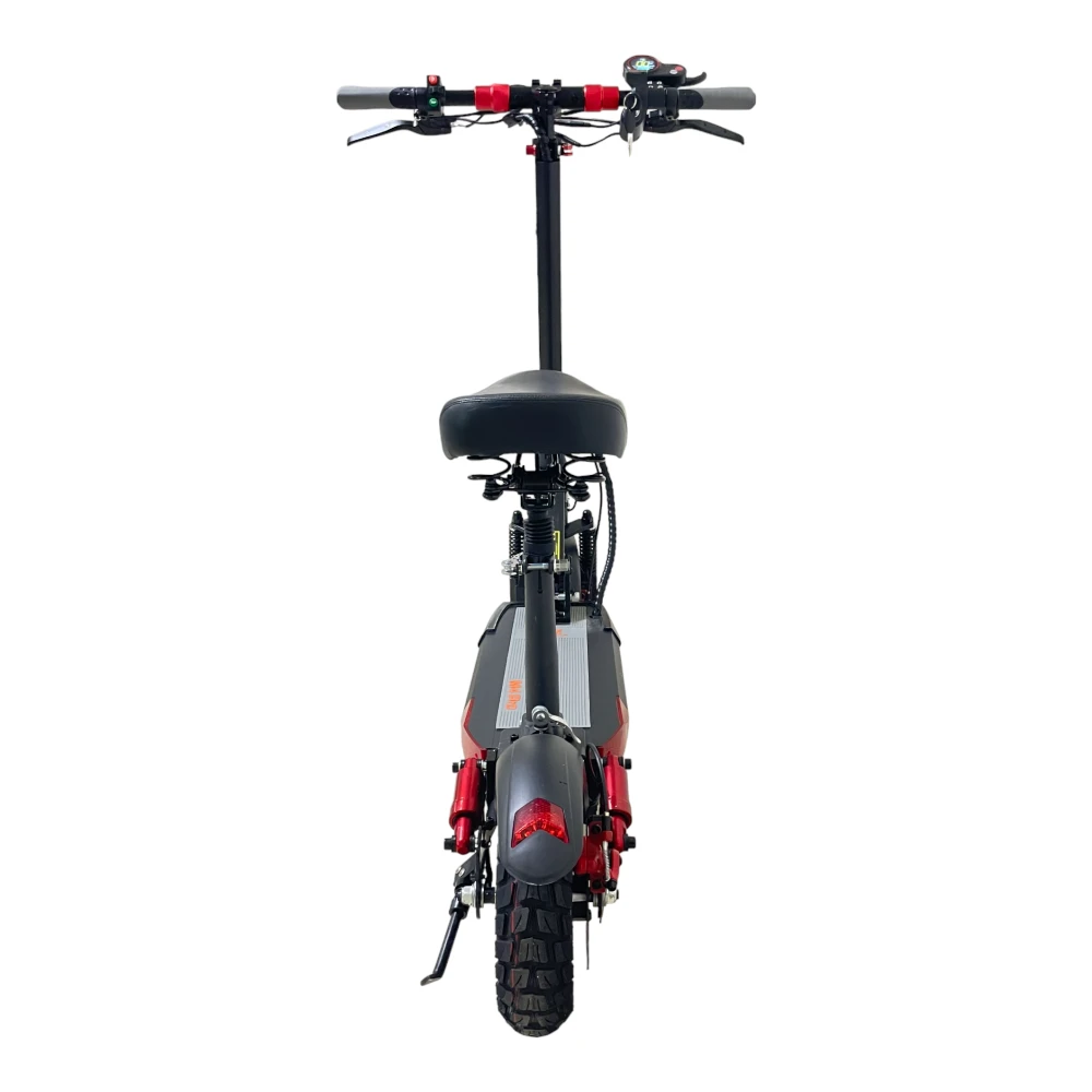 Данная модель весьма технологична – в неё встроен бортовой компьютер. У самоката имеется подножка и возможность регулировки ручек по высоте. Как сзади, так и спереди установлены амортизаторы. Отметим и ещё одно преимущество данной модели – наличие сиденья. Оно позволит вам чувствовать себя комфортно и не уставать в долгой поездке. Плюс, у этого самоката очень симпатичный дизайн.