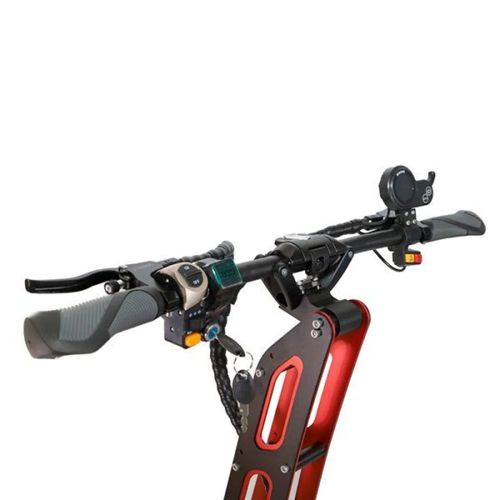 Удивительно, что при таких технических характеристиках модель может складываться до компактных эргономичных размеров. Система складывания – простая, не требует посторонней помощи. Поэтому, при необходимости ездок может транспортировать элетросамокат в машине.