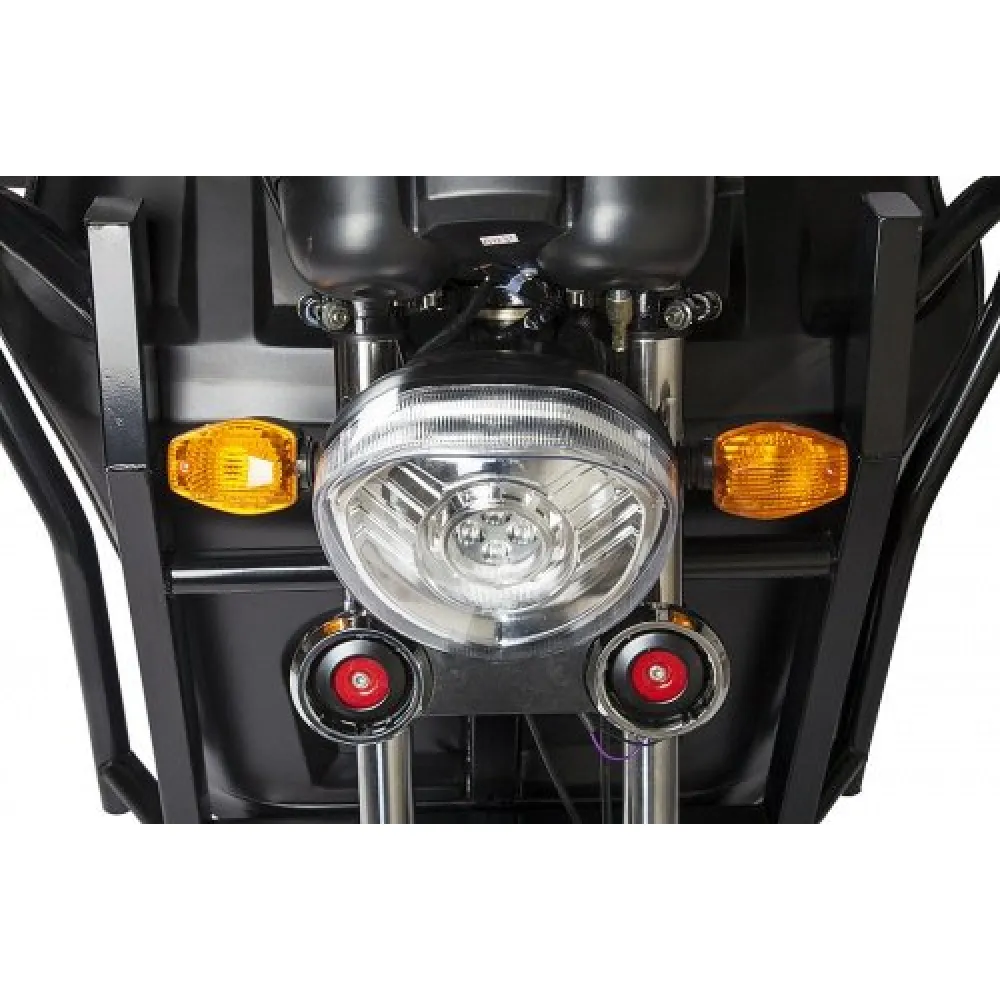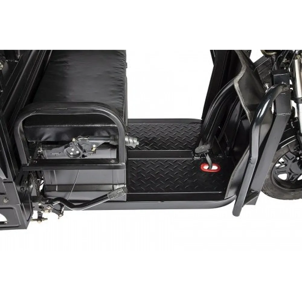 При мощности двигателя 1000 Вт суперэлектротрицикл способен развивать приличную скорость – до 35 км/час и преодолевать до 50 км пути. Емкая АКБ занаряжается сравнительно быстро.