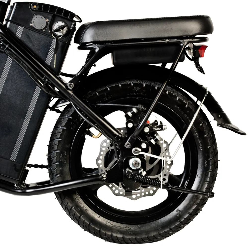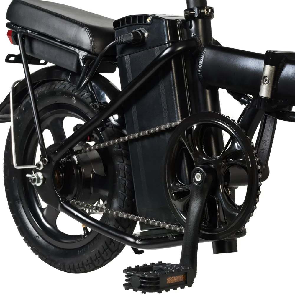 В новой модели производитель обновил комплектующие, сделав модель лучшей по скоростным параметрам. Электровелосипед при мощности мотор-колеса способен развить скорость до 40 км/час и проехать на одной подзарядке до 40 км. Емкая фирменная АКБ размещена в нижней части, сбоку от седла, не мешает райдеру, легко снимается для подзарядки.