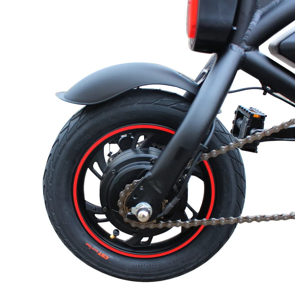 Информационный дисплей установлен на руле, на нем можно отслеживать показатели устройства. Впереди яркая фара, сзади стоп-сигнал. Заводиться электровелосипед от ключа.