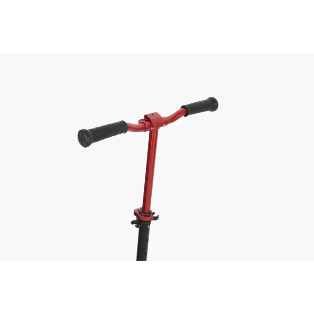 Рулевая стойка – изготовлена из прочного алюминия. Рули – широкий, изогнутый и удобный, составляет 47,5 см. Грипсы – прорезиненные, повторяют анатомическое строение руки. Руль фиксируется в трех положениях. В технике предусмотрена система складывания. Имеется ремешок для переноса самоката.