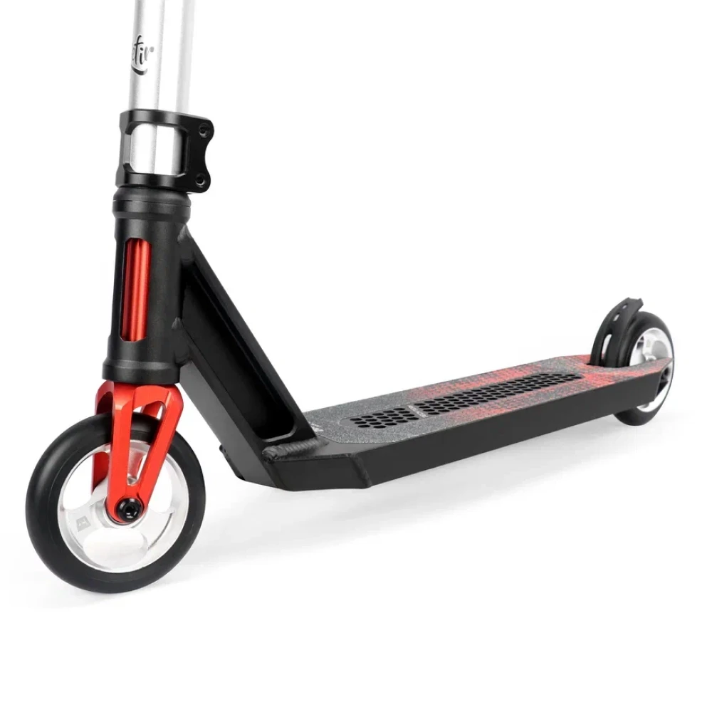 Трюковой самокат Tech Team Zefir Lite 49 в черно-красном цвете идеально подходит для райдеров ростом от 150 до 165 см. Он обеспечивает оптимальный комфорт и контроль при управлении, а его вес всего 2,8 кг делает его легким и маневренным.