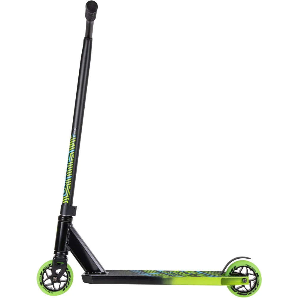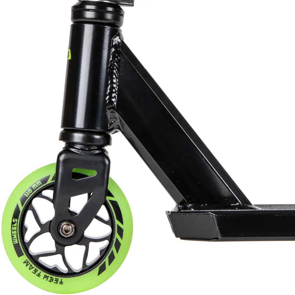 Модель самоката компактная, минималистичная, удобная, имеет маленький вес (3,55 кг). Для большего привлечения внимания и эффектности выполняемых трюков и прыжков техника оснащена яркими светящимися колесами. Плавность и размеренность передвижения самоката обеспечивается фирменной компрессионной системой. Мягкие резиновые накладки на руле прочно закреплены. Имеют анатомически правильную форму, не вызывают дискомфорта при движении. Самокат надежный в эксплуатации, обладает повышенными скоростными характеристиками.