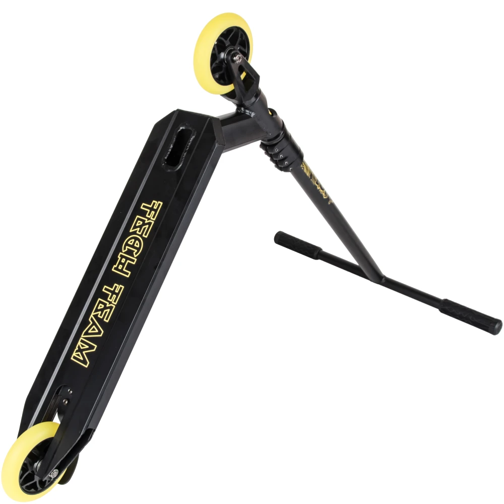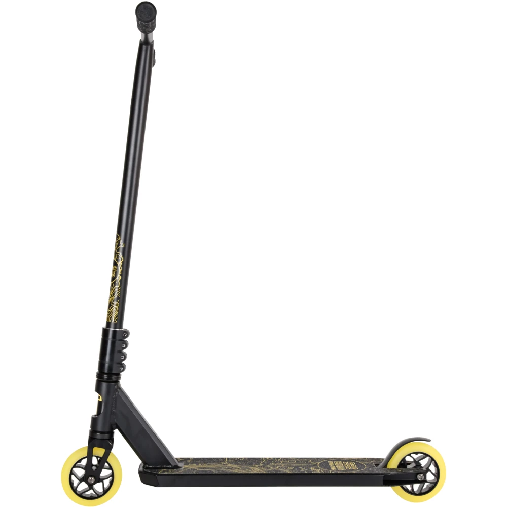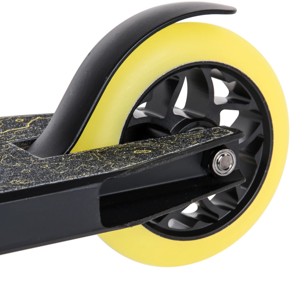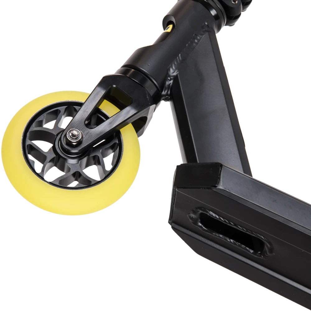 Производитель гарантирует надежность сборки, используя только фирменные детали. Повышенная комфортность техники обеспечивается благодаря удобной рулевой части. Резиновые накладки на руль надежно закреплены. Имеют анатомически правильную форму, не скользят под руками. Техника весом 3,75 кг позволит ощутить легкость передвижения и исполнения трюков. Приемлемая цена делает модель доступной для начинающих райдеров. Абсолютная безопасность самоката обеспечивается благодаря качественным задним ножным тормозам. Колеса диаметром 110 мм из прочного полиуретана позволяют прочно сцепляться с любой дорожной поверхностью.