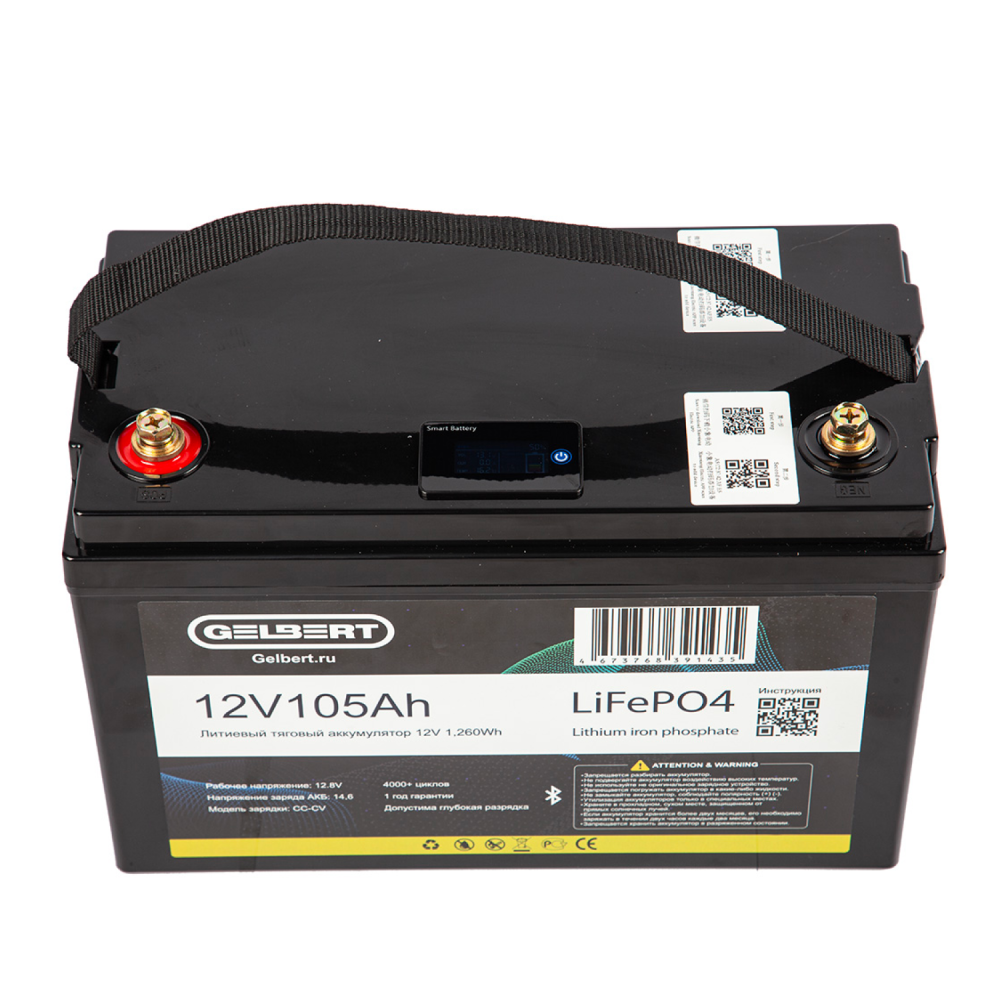 Аккумулятор литиевый тяговый Gelbert LiFePO4 (12V/105Ah/100А/1,260Wh) Bluetooth