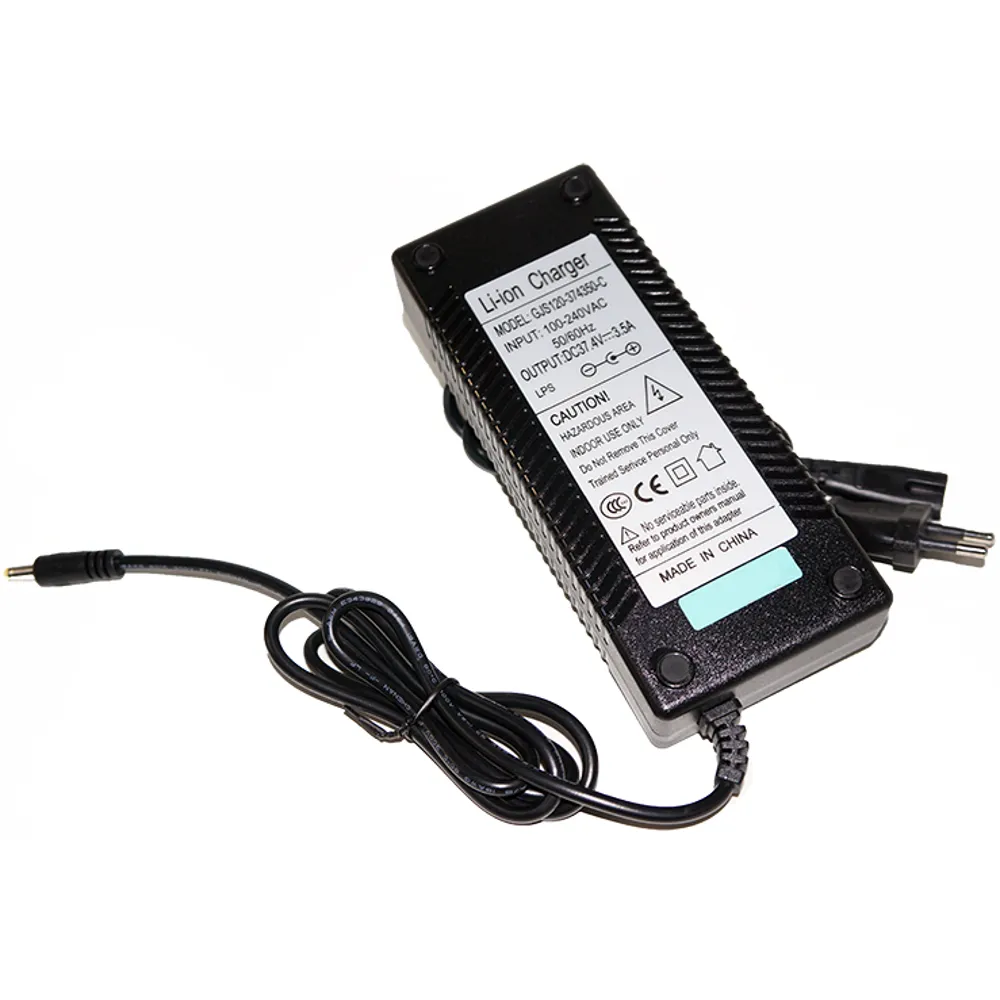 Зарядное устройство электросамоката E-TWOW S2 Booster имеет напряжение на выходе 37.5 вольт, силу тока 3.5 А. Имеет прочный корпус и мягкие шнуры без изломов. Подходит для зарядки литиевых аккумуляторов.