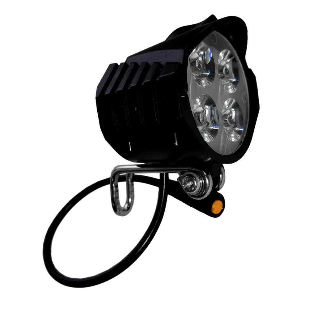 С уровнем влагозащиты IPX4, эта фара готова к использованию в любых погодных условиях, повышая вашу безопасность и комфорт на дороге. Она значительно улучшает видимость, снижая риск аварийных ситуаций. Благодаря этой фаре вы сможете без ограничений передвигаться в темное время суток, чувствуя уверенность и комфорт. Незаменимый аксессуар для любого владельца электровелосипеда, заботящегося о своей безопасности.