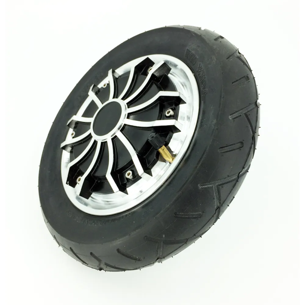 Данное колесо идет в сборе с покрышкой и камерой. Покрышка со средним протектором, для более ровного дорожного покрытия, асфальта, плитки, за счет не большого клиренса гироскутер 8” показывает низкую проходимость. Если ездить по бездорожью они очень быстро выходят из строя. Но несмотря на это он достаточно мощный и маневренный. Имеет угол разворота почти 360 градусов. Мощность двигателя 350 Вт, для относительно не большого гироскутера это отличный показатель. В этой модели гироскутера сочетаются отличные технические данные с не большим весом и оптимальной ценой.